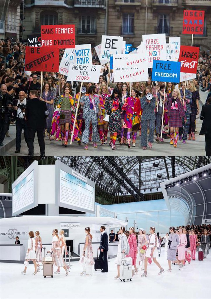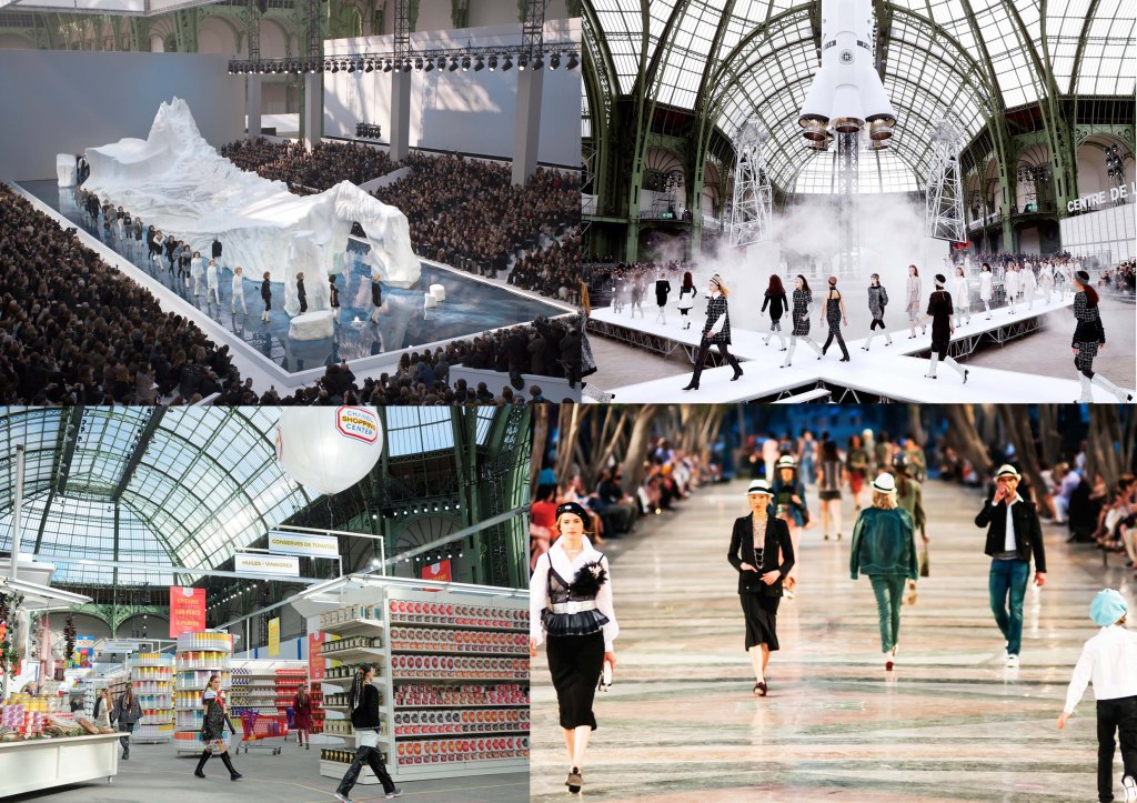 Memorables desfiles como el de AW18 (bosque otoñal), SS18 (cascada), AW17 (cohete espacial), SS16 (aeropuerto), AW15 (casino), SS15 (protesta feminista, París impreso en lonas gigantes), AW14 (supermercado), FW2010 (iceberg).