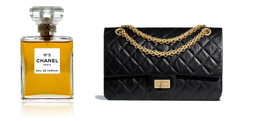 Populariza las perlas, la bisutería, las bailarinas y zapatos bicolor, y el little black dress (en parte inspirado en sus años en el convento, en parte como símbolo de luto por la muerte de Boy Capel, y, en parte, probablemente como provocación, puesto que el negro siempre fue un color para la noche, pero no para el día). Crea el icónico Chanel nº5, y el bolso 2.55. Quizás ya lo sepan, pero el nombre del perfume es el número de la muestra que el perfumista del zar ruso le mostró: el número 5. En cuanto al 2.55, el mítico bolso de napa acolchada, se refiere al mes y año de lanzamiento: febrero de 1955.