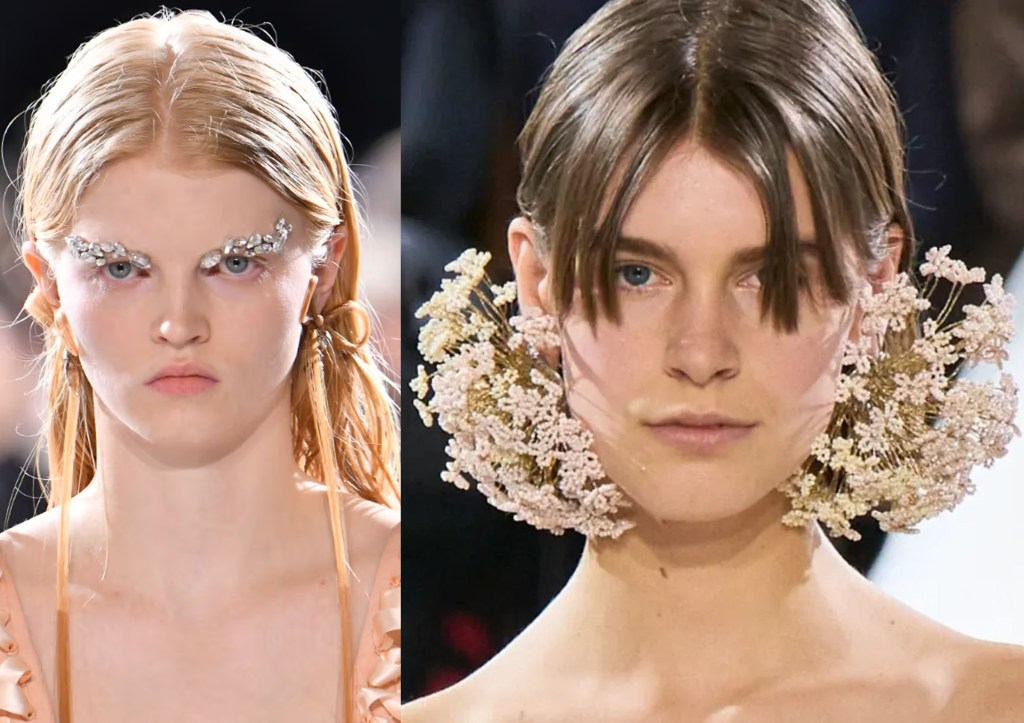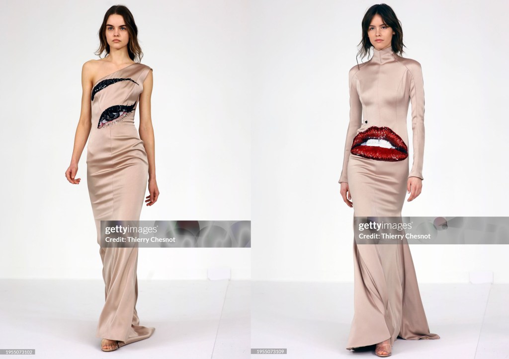 En esta colección SS24 nos presenta 39 looks, de una paleta vibrante a los matices más sutiles; la pincelada de Alexis Mabille es a la vez sobria y sofisticada, elaborada para mujeres que reconocen que la verdadera belleza es una expresión de amor propio. El tema “Mirror, mirror” («Espejito, espejito») está plenamente representado con una paleta de colores maquillaje realmente elegantes. Una colección que nos recuerda a lo que Raf Simons hizo para Dior: una mujer ultrafemenina, silueta reloj de arena y una paleta de color muy contemporánea. Pero también hay destellos de un surrealismo muy sofisticado, presentes en dos vestidos ceñidos nude con un ojo y unos labios bordados.