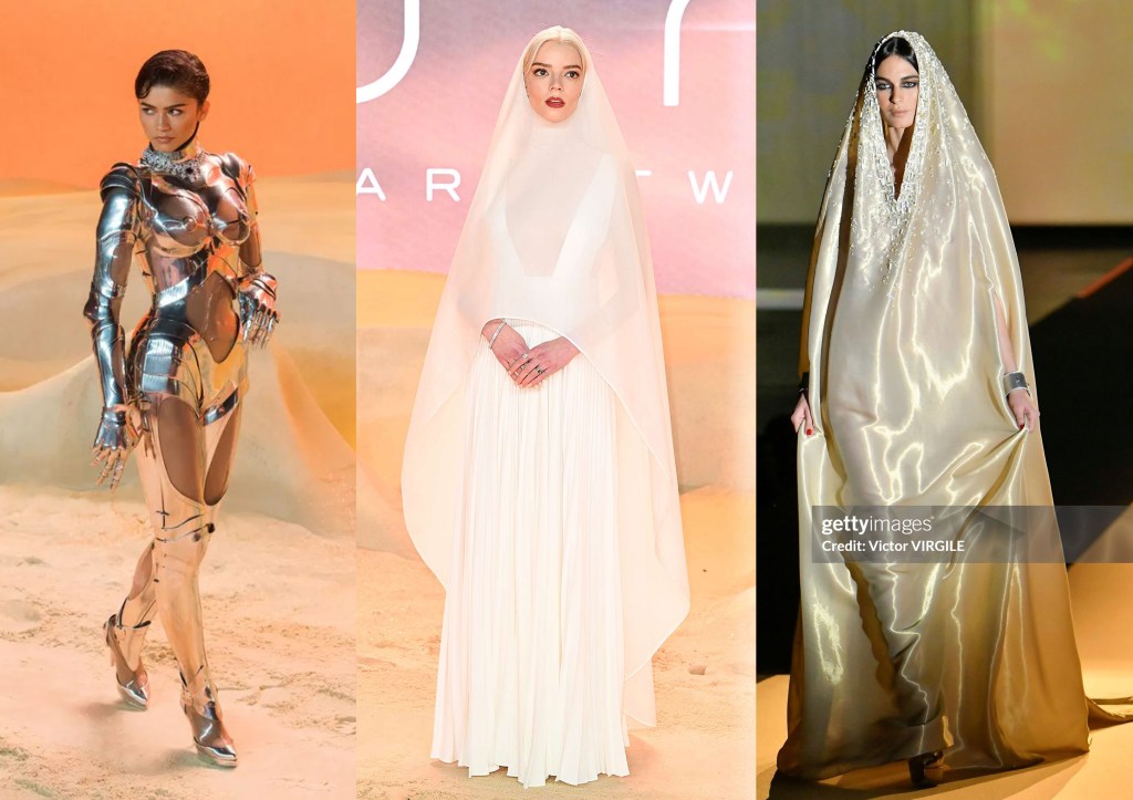 Hace unos días hemos visto la gala de la Premier de la película Dune, Zendaya llevaba un look de la colección de 1995 de Thierry Mugler, una mujer robótica espectacular. Y también hemos visto a Anya-Taylor Joy con un look de Dior Haute Couture increíblemente parecido a uno de la colección de Stéphane Rolland, sólo que el de Dior era más sobrio, nos habría gustado más verla con el de Rolland.