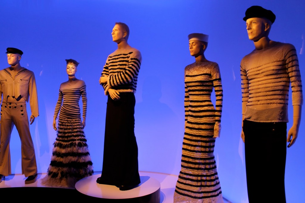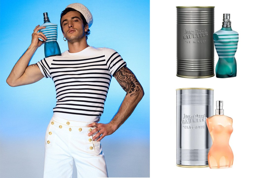 Entre sus hitos más reconocibles se encuentran las camisetas y sombreritos de marinero, los corsés cónicos, que se utilizan como prenda exterior, y no interior, para realzar la «ultrafeminidad» de las mujeres; las faldas salen del armario femenino para convertirse en una prenda masculina, e imposible olvidar sus ya míticos perfumes en forma de bustos femeninos y masculinos, envueltos en una caja trompe l’oeil que parece una caja de sardinas. El diseñador afirma: «Mi excentricidad se ha convertido en mi norte».