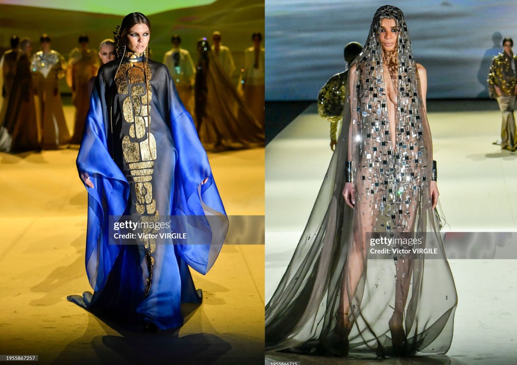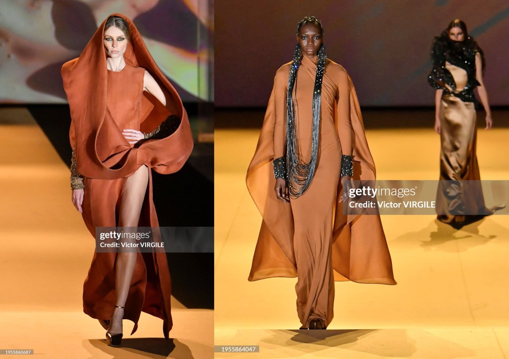 En esta colección SS24 nos presenta 32 looks, con los que nos demuestra lo que es la alta costura en mayúsculas, son vestidos que no has visto en otro lugar, pero sabes que no los olvidarás. La colección está inspirada en el desierto, un desierto en el que la mujer se protege y se esconde en un capullo de tejido.
