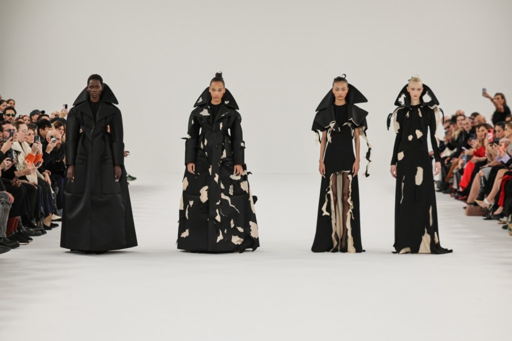 En esta colección SS24 nos presenta 27 looks bajo el nombre “Utakata”, una palabra japonesa que significa «efímero». “Lo que quería transmitir con esta colección era una especie de armadura efímera, como una delicada burbuja que se forma en la superficie del agua, capaz de desvanecerse en un abrir y cerrar de ojos”.