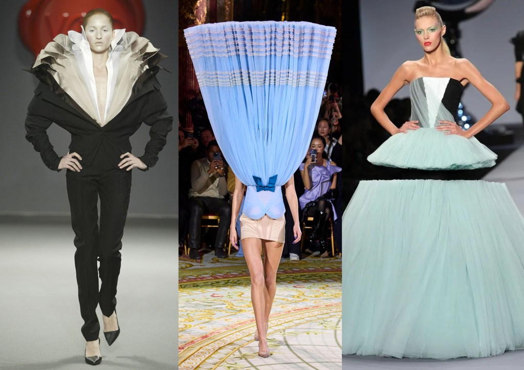 - Jean Paul Gaultier (x Simone Rocha): Jean Paul Gaultier es un diseñador nacido en Arcueil, París, en 1952. Gaultier nunca recibió formación como diseñador, pero de joven se decidió a enviar sus dibujos a diversas firmas, aprendió de las revistas y los mercadillos. Siendo muy joven (todavía no había terminado el instituto) comenzó a trabajar para Pierre Cardin. Trabajó para diversas firmas y en 1976 el “enfant terrible” decidió establecerse por su cuenta.