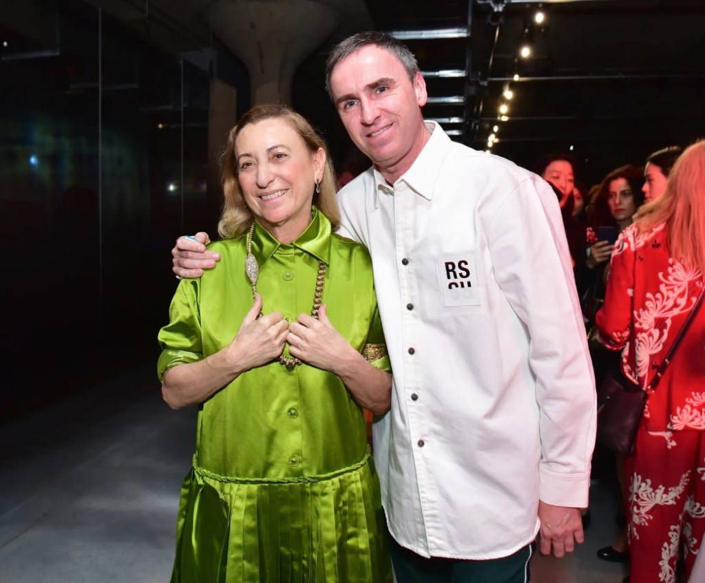 Sus directores creativos son Miuccia Prada y Raf Simons. Desde 2020, Raf Simons se une a la dirección creativa, que había sido un cargo que Miuccia había llevado siempre en solitario, tras graduarse en Ciencias Políticas. Simons fue diseñador en Walter Van Beirendock, Jil Sander, Dior y Calvin Klein. El director de diseño de Prada es Luigi Preziotti, nombrado en 2023.