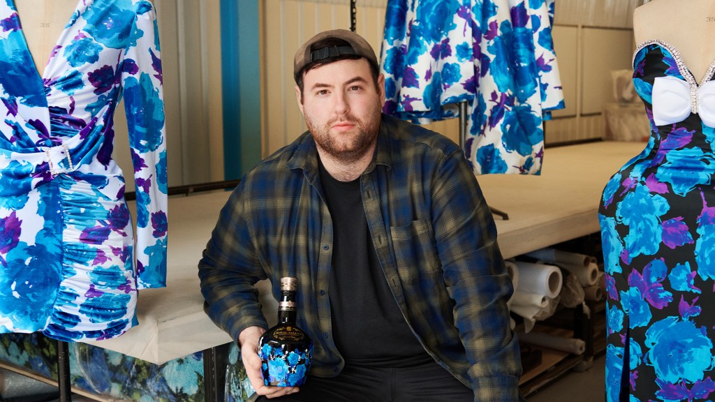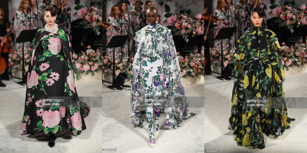 «Imprimimos todo internamente. Todo lo cortamos nosotros. Sí, la pedrería se hace en otro sitio, pero todo se hace en casa». Así se expresó Richard Quinn inmediatamente después de un desfile cuyo salón recién alfombrado en el Andaz London estaba envuelto en 900 metros cuadrados de su característico tejido floral. Esa tela, añadió, ya se había vendido a un minorista: «No se desperdicia nada».