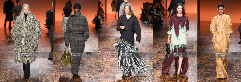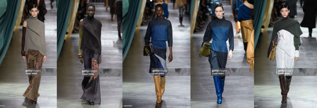 De Sarno muestra moderación, con un enfoque absoluto en el color y la silueta. Desde un punto de vista comercial, resulta más favorecedor: es un enfoque más directo (aunque no menos lujoso) del vestuario, menos dependiente de la «historia/tendencia de la temporada» y más preocupado por vestir al cliente para su día a día, tanto si necesita un abrigo estructurado que sólo requiera botas de montar hasta la rodilla para completar el look, como un vestido brillante para una ocasión especial.