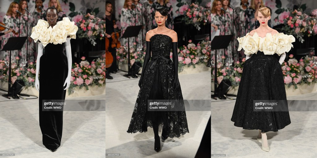En una visita a una sala de exposiciones previa a su desfile, le preguntaron a Browne si tal vez estaba atormentado como el protagonista de El cuervo, y se rió. «Crecí amando a Edgar Allan Poe», dijo, «y además, siempre me gusta que la gente vea que soy un diseñador americano». Carrie Coon, la Bertha Russell de The Gilded Age, narró el poema, lo que añadió un elemento de dramatismo al espectáculo que no siempre habían tenido las anteriores salidas de Browne, ya que su discurso cambiaba a medida que leía, de tranquilo a bastante agitado, hasta llegar a la histeria total.