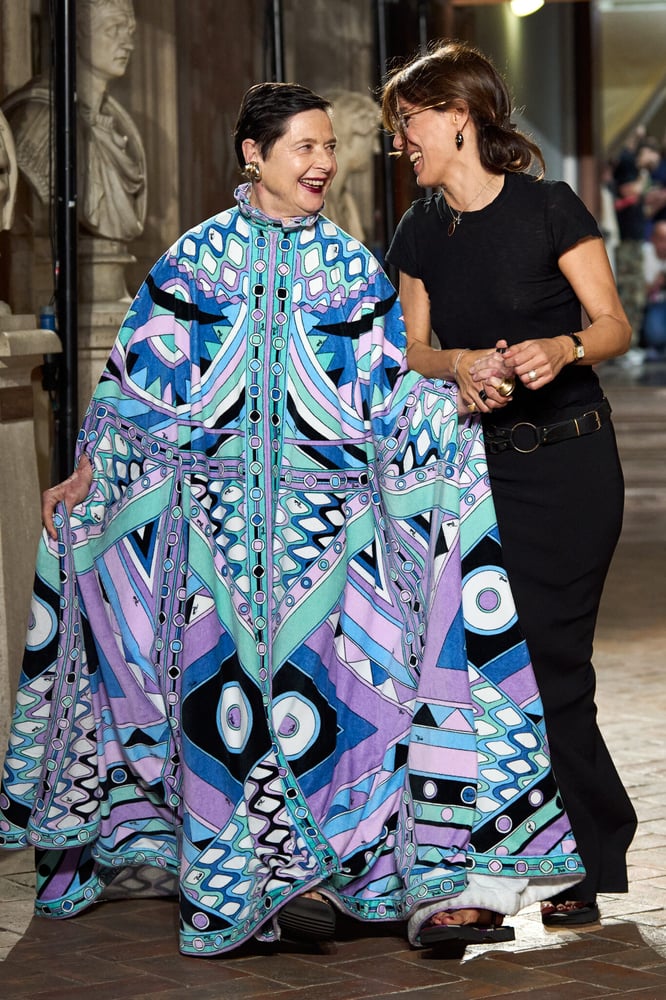 Desde entonces, Miceli ha trabajado para subrayar la herencia de Pucci, ampliando su territorio más allá de la ropa de temporada. La colección presentada en Roma fue una oda al estampado «Vivara» de Emilio Pucci de 1965, inspirado en el Mediterráneo, y a un reportaje de Vogue de 1990 en el que aparecía Isabella Rossellini sobre un fondo “Vivara” (Rossellini cerró el desfile). “Intentamos adentrarnos aún más en la vida urbana: pensar en Pucci no sólo para las vacaciones de verano, sino también para el invierno, y no sólo para esquiar, sino también para el invierno en la ciudad”, dijo Miceli.