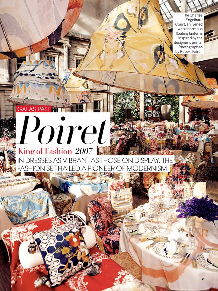 Para ello, recurrió a la copresidencia de grandes personalidades, como la ex primera dama Jacqueline Kennedy-Onassis, y trasladó la gala al propio museo. Con la ayuda del famoso decorador Billy Baldwin, que había transformado su propio apartamento en un “jardín en el infierno”, tal y como ella había solicitado, el propio museo se convirtió en el escenario de la fiesta del año. La decoración de la cena fue siempre tan «dramática» como ella. Tras la muerte de Vreeland en 1989, la socialité Pat Buckley se hizo cargo de la gala, que siguió contando con los cisnes mejor vestidos de la sociedad de Manhattan. Durante su mandato, se pusieron a la venta entradas a precios excesivos para el after-party, que incluía postre y baile en el gran salón del museo. El salón se llenaba de cientos de juerguistas deseosos de admirar a los invitados a la salida de la cena.